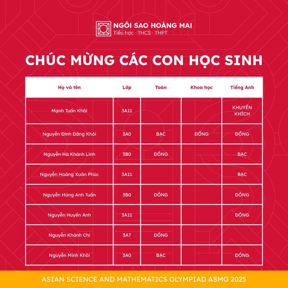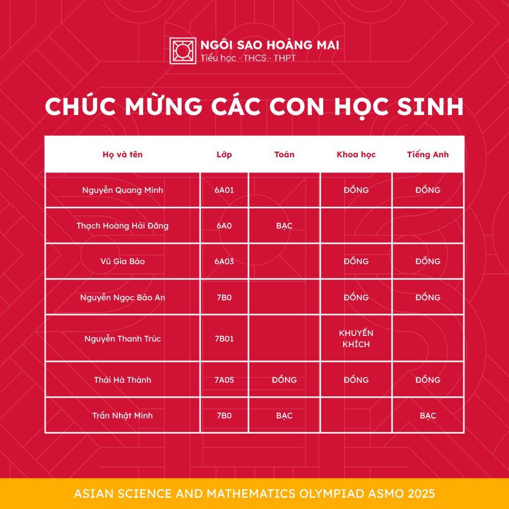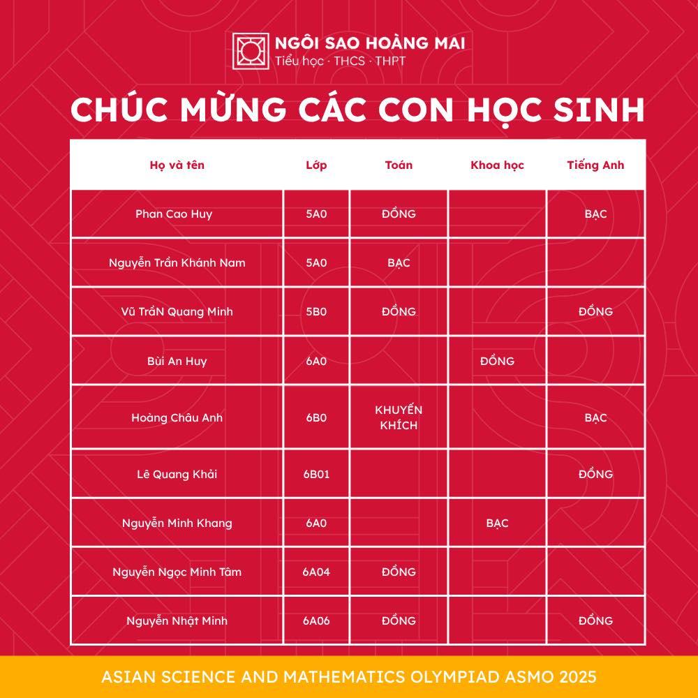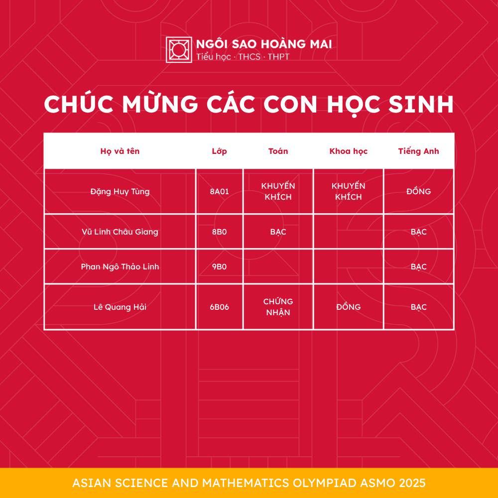 🌐Trong hành trình khám phá tri thức, mỗi cuộc thi không chỉ là nơi để đo tài, mà còn là cơ hội để thử thách chính mình. Và tại Asian Science and Mathematics Olympiad (ASMO) 2025, những “ngôi sao nhỏ” đã một lần nữa làm rạng danh mái trường mang tên Ngôi Sao Hoàng Mai