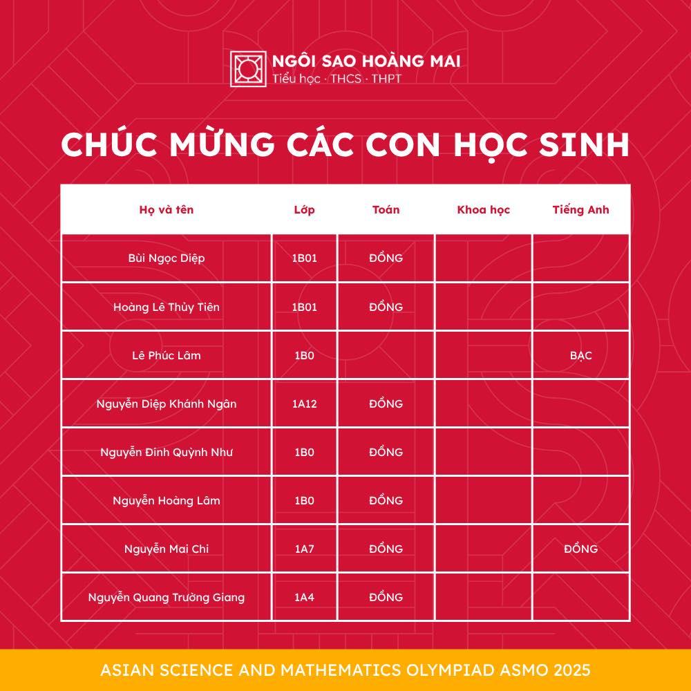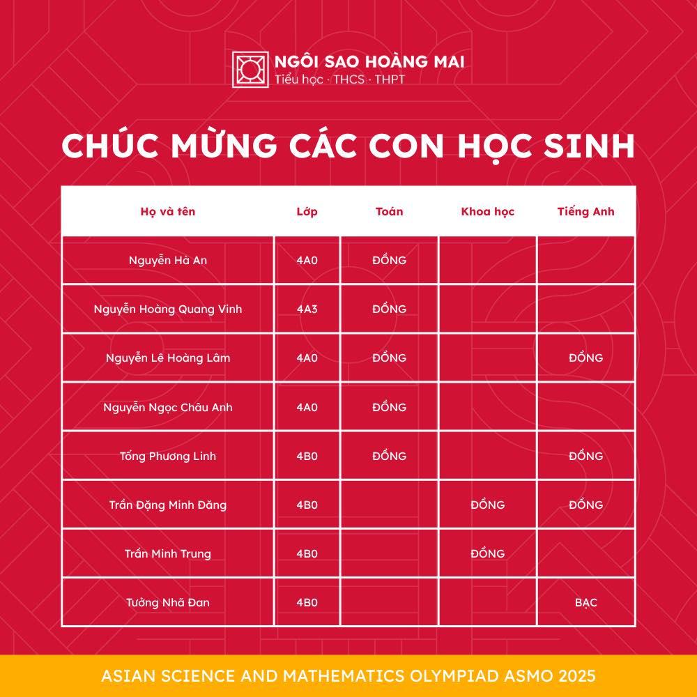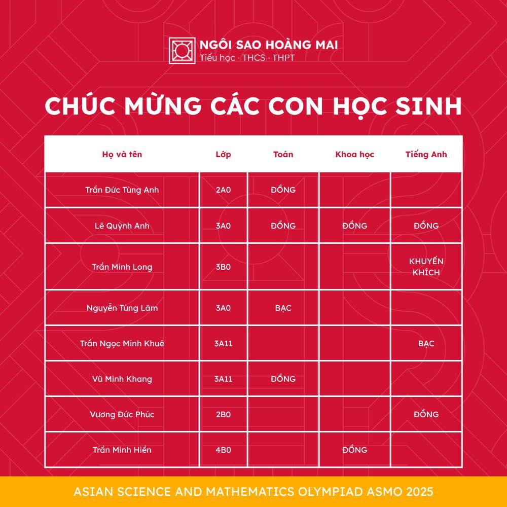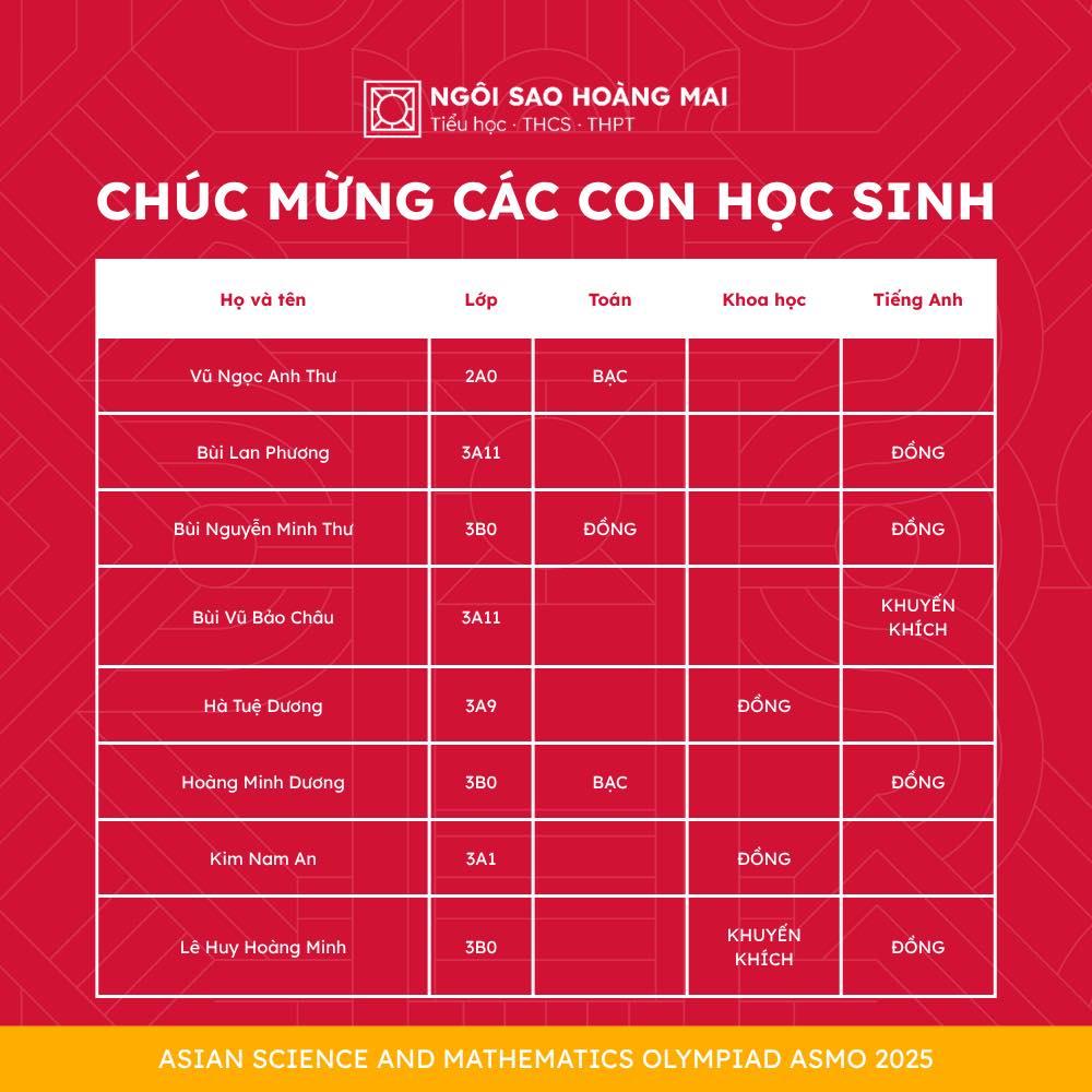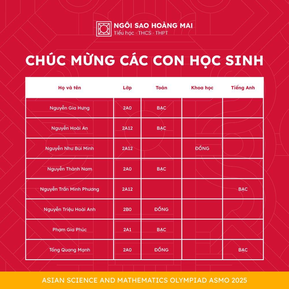 🌐Trong hành trình khám phá tri thức, mỗi cuộc thi không chỉ là nơi để đo tài, mà còn là cơ hội để thử thách chính mình. Và tại Asian Science and Mathematics Olympiad (ASMO) 2025, những “ngôi sao nhỏ” đã một lần nữa làm rạng danh mái trường mang tên Ngôi Sao Hoàng Mai