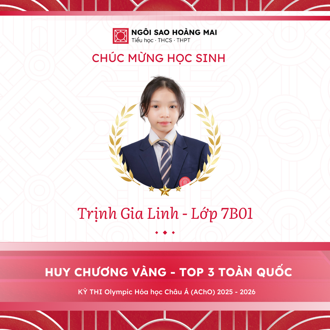 🏅 01 HUY CHƯƠNG VÀNG – TOP 3 TOÀN QUỐC - Trịnh Gia Linh (7B01)