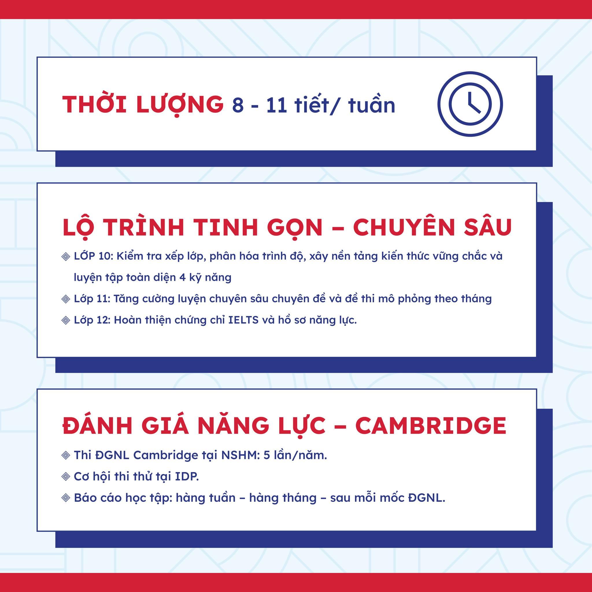 ♦️Chương trình IELTS được thiết kế cá nhân hóa, xuyên suốt từ lớp 10 đến lớp 11 với thời lượng từ 8 - 11 tiết/tuần: