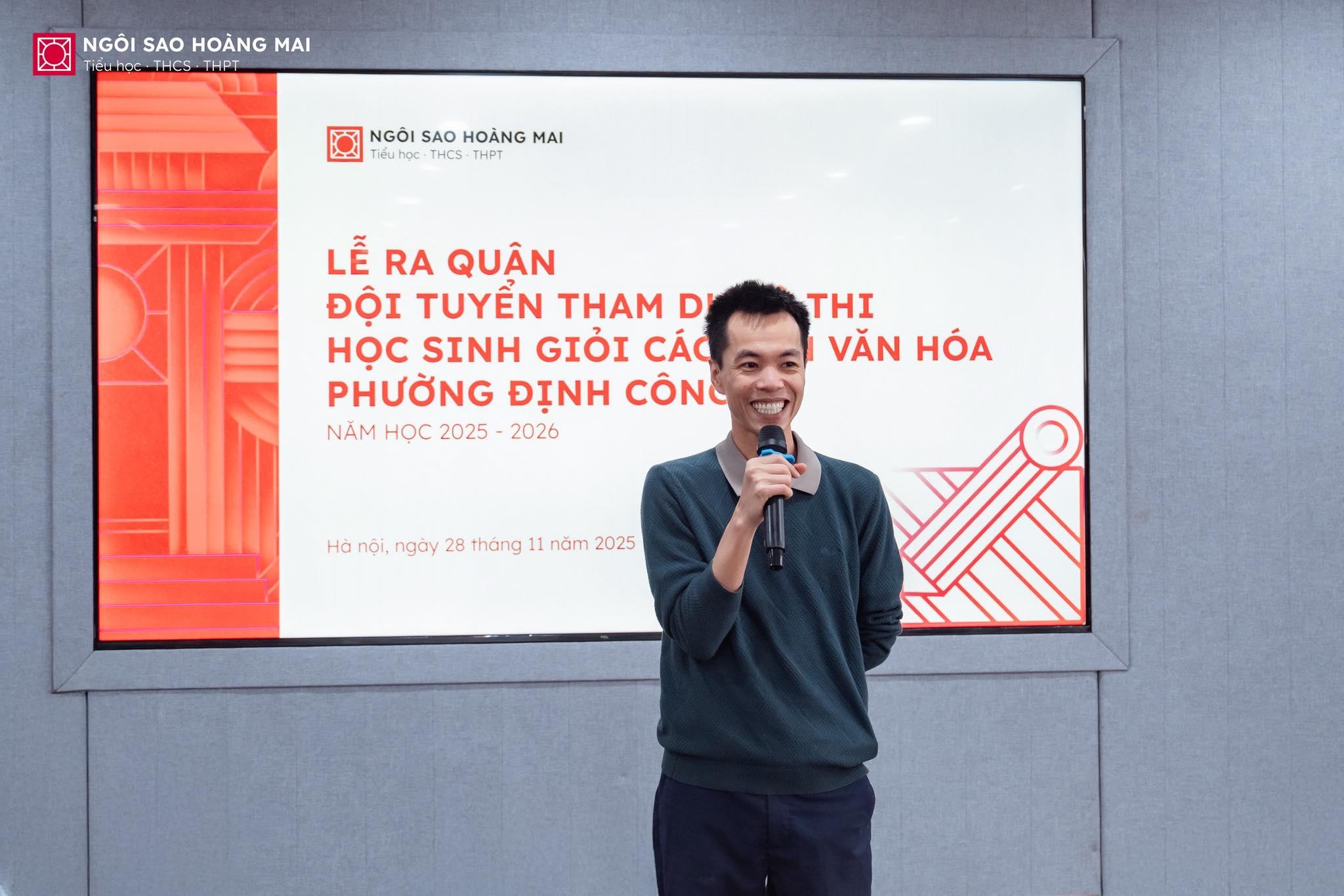 🌤️Sáng nay, Trường Ngôi Sao Hoàng Mai đã long trọng tổ chức Lễ ra quân Đội tuyển Học sinh giỏi các môn Văn hóa phường Định Công năm học 2025 – 2026, một sự kiện quan trọng đánh dấu bước khởi đầu cho hành trình chinh phục tri thức của những gương mặt xuất sắc nhất cấp THCS và là bước chuẩn bị quan trọng để lựa chọn đội tuyển tham gia Kỳ thi Học sinh Giỏi Thành phố ở các môn văn hóa khối 7, 8, 9 trong thời gian tới.