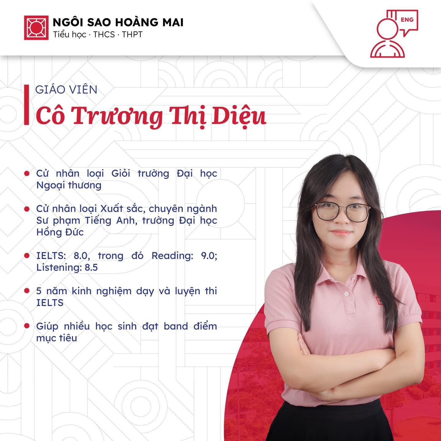 ▪️IELTS Reading 8.5 với 5 năm kinh nghiệm giảng dạy tiếng Anh và phát triển chương trình IELTS.