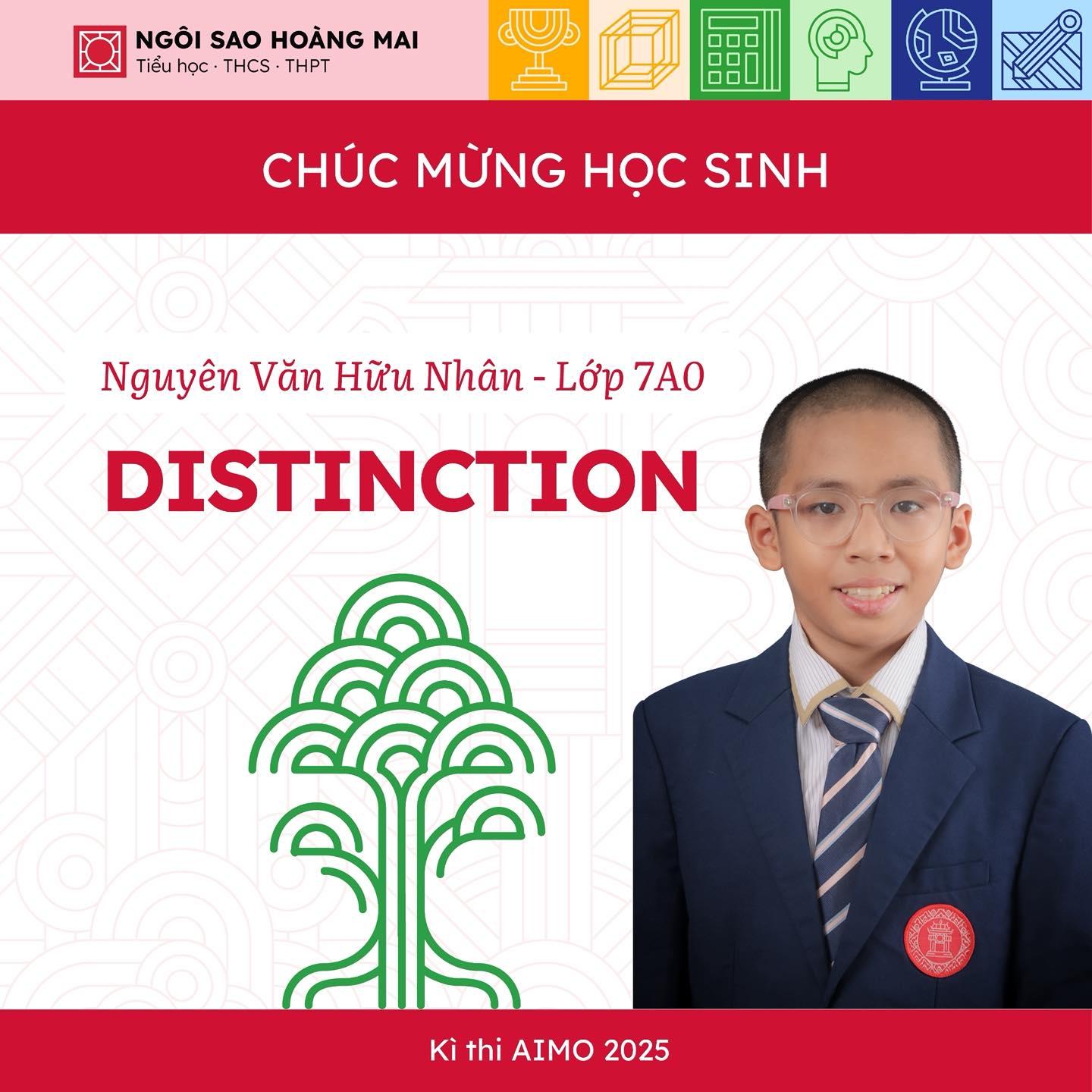 🥇Nguyên Văn Hữu Nhân – 7A0: Distinction