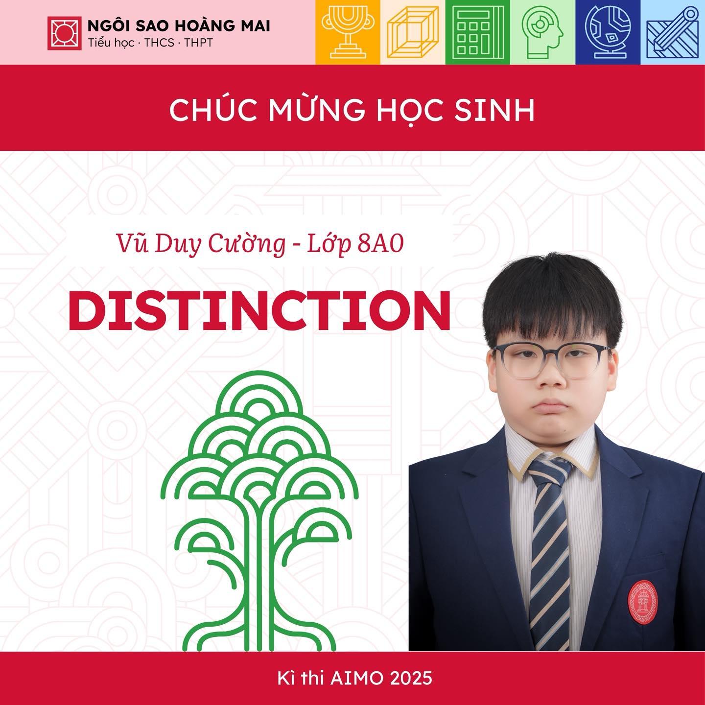 ✨ Nối tiếp chuỗi thành tích ấn tượng tại các sân chơi học thuật trong nước và quốc tế, học sinh Ngôi Sao Hoàng Mai tiếp tục khẳng định bản lĩnh, trí tuệ khi xuất sắc giành 07 giải thưởng tại Kỳ thi Toán học Úc mở rộng (AIMO 2025) do Quỹ Ủy thác Toán học Úc (Australian Mathematics Trust) tổ chức.