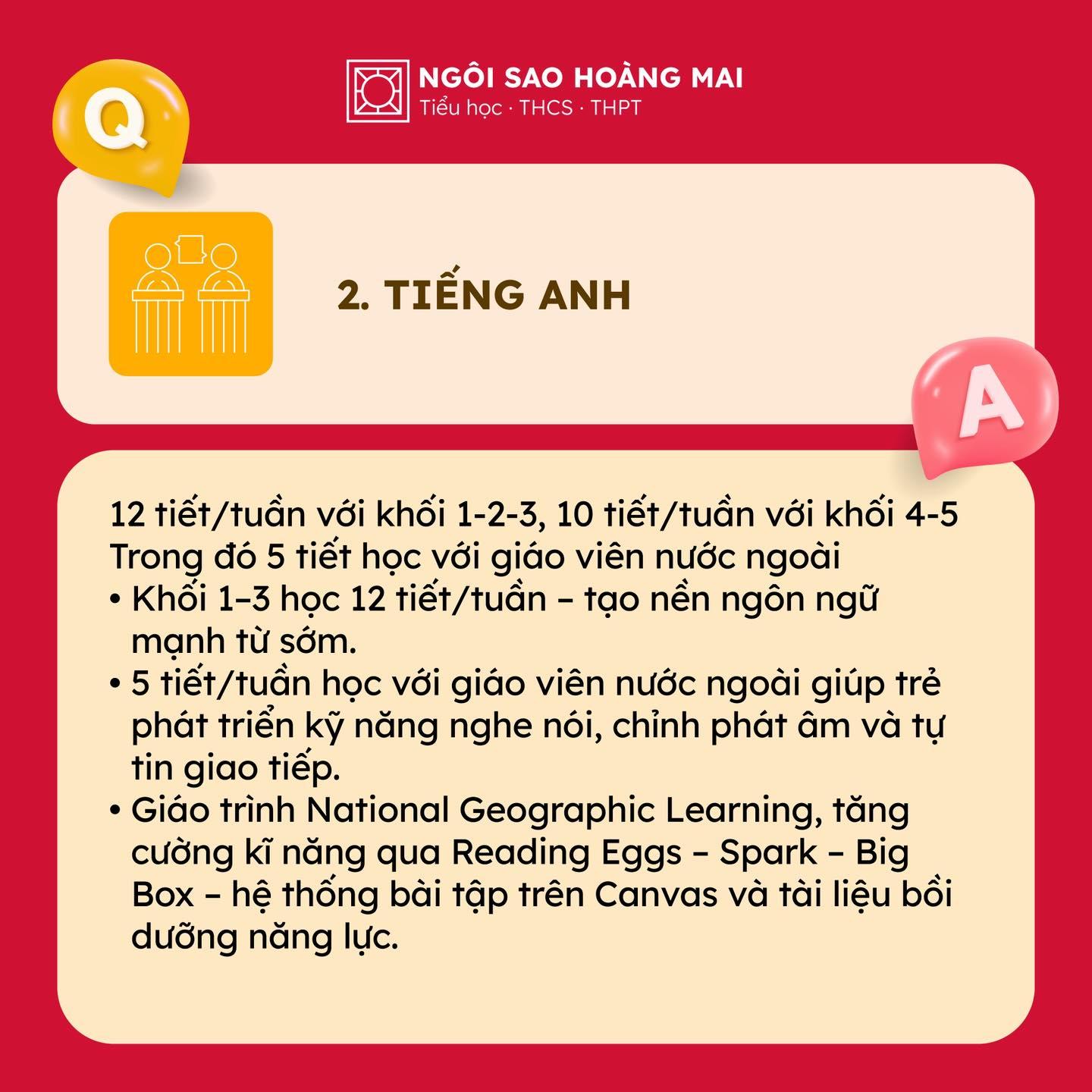 🌱 Chương trình Tiểu học tại Ngôi Sao Hoàng Mai được thiết kế theo định hướng xây nền – tăng tốc – bứt phá, giúp trẻ phát triển đều ở 3 trụ cột: tư duy – ngôn ngữ – kỹ năng, đồng thời tạo ra sự khác biệt rõ rệt ngay trong 1 năm đầu tiên đến trường.