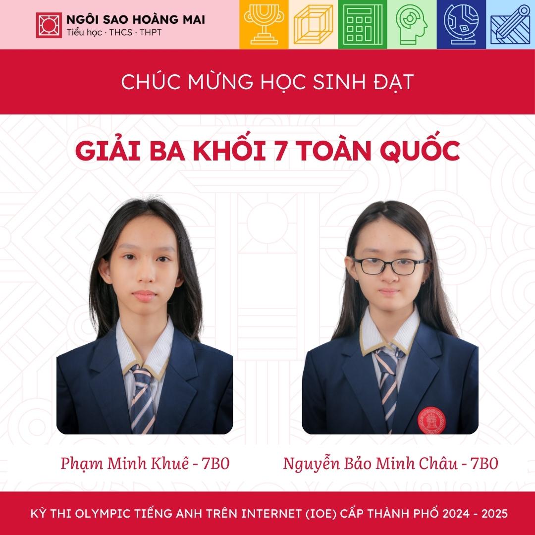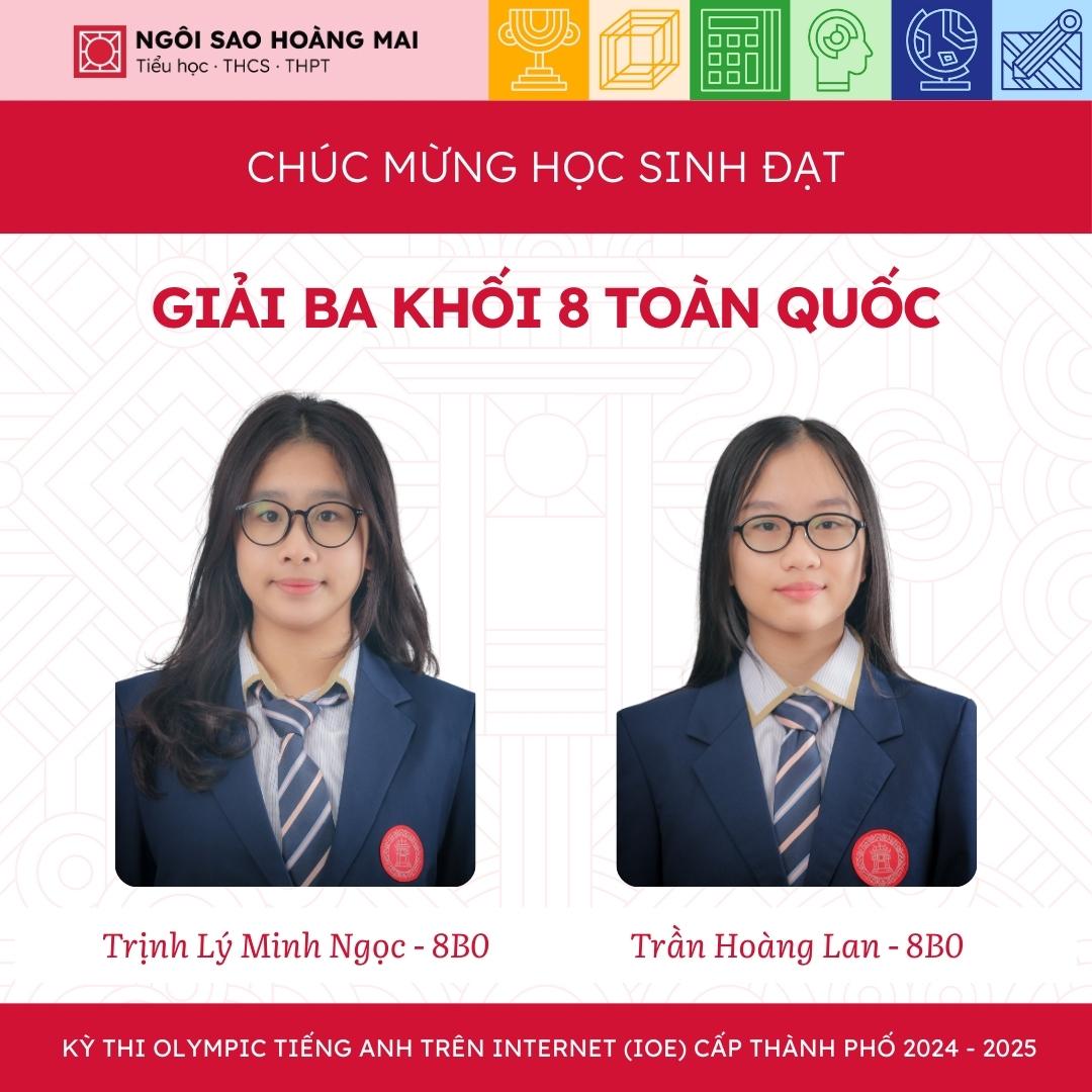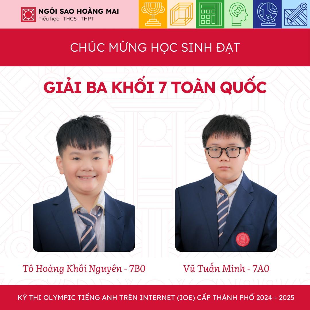 Một lần nữa, Ngôi Sao Hoàng Mai xin được chúc mừng tất cả học sinh, thầy cô và gia đình. Hy vọng rằng, các con sẽ tiếp tục phát huy tài năng và tiến xa hơn ở những cuộc thi trí tuệ trong tương lai.