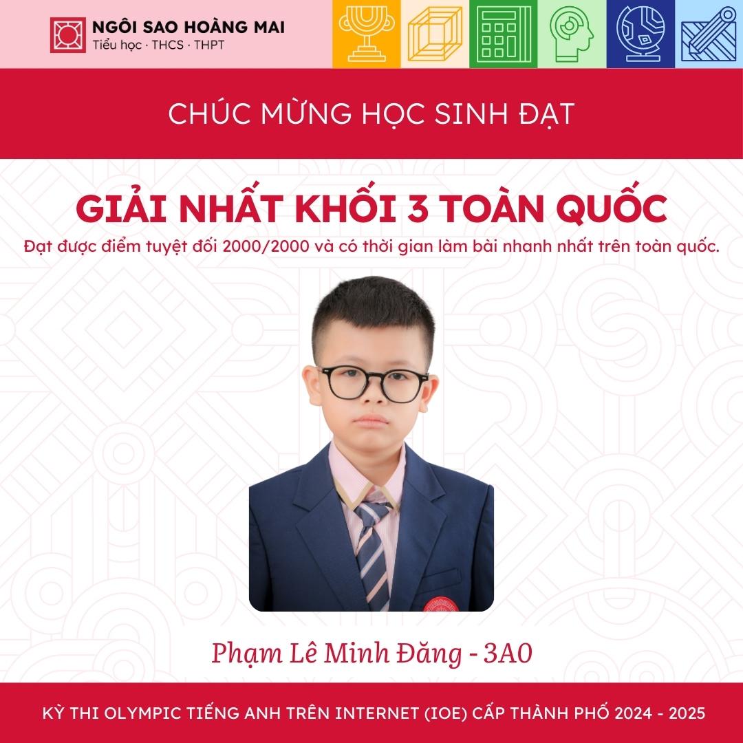 17 học sinh ưu tú (03 HS Tiểu học, 14 HS THCS) được BTC cuộc thi vinh danh toàn quốc. Đặc biệt, em Phạm Lê Minh Đăng - 3A0 là thí sinh ĐẠT ĐIỂM TUYỆT ĐỐI 2000/2000 và có thời gian làm bài nhanh nhất cả nước. Và em Nguyễn Hà Linh - 6B0 cũng đã xuất sắc ghi trọn điểm 2000/2000.
