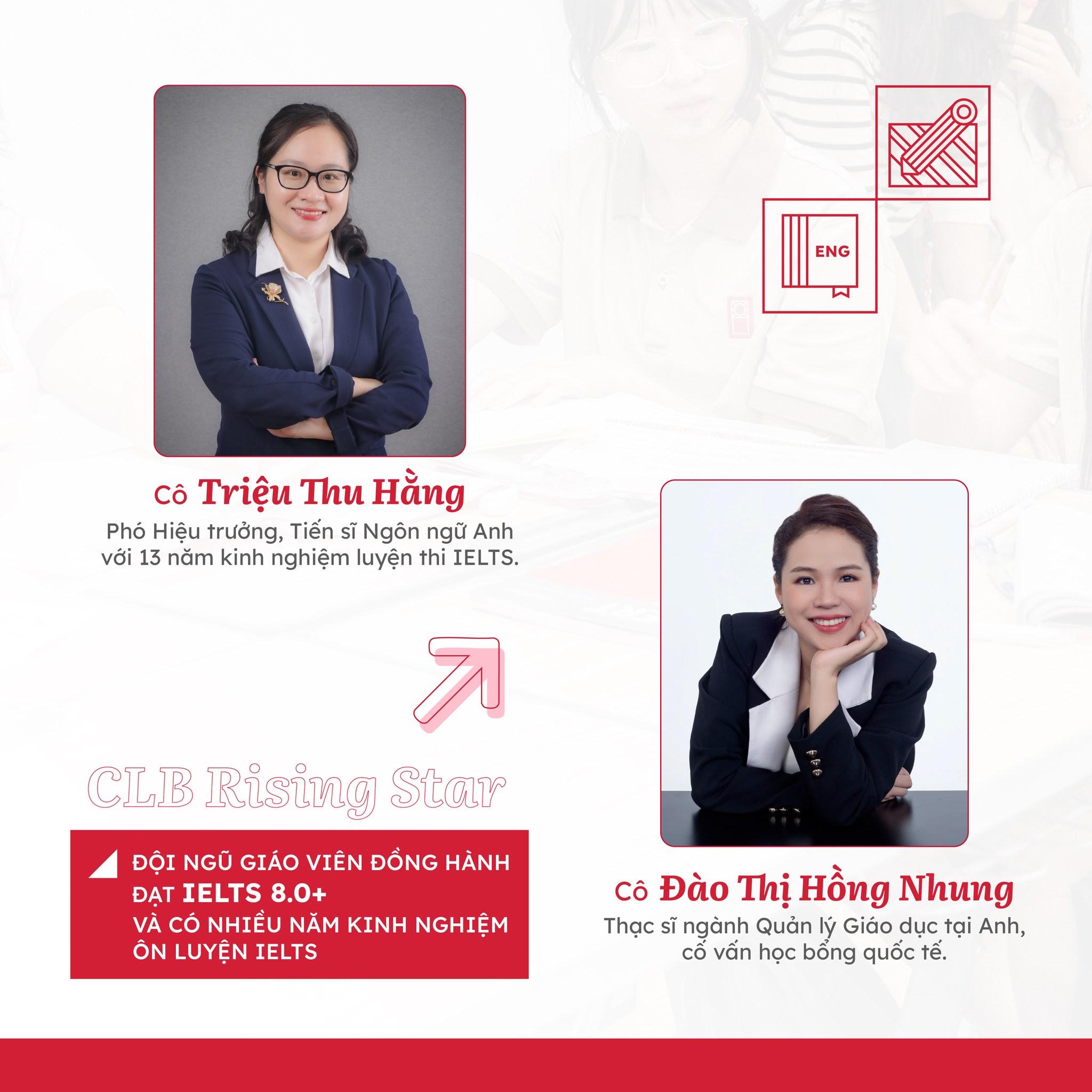 • Đội ngũ giáo viên cơ hữu đạt IELTS 8.0+ và có nhiều năm kinh nghiệm, luôn đồng hành sát sao cùng học sinh.