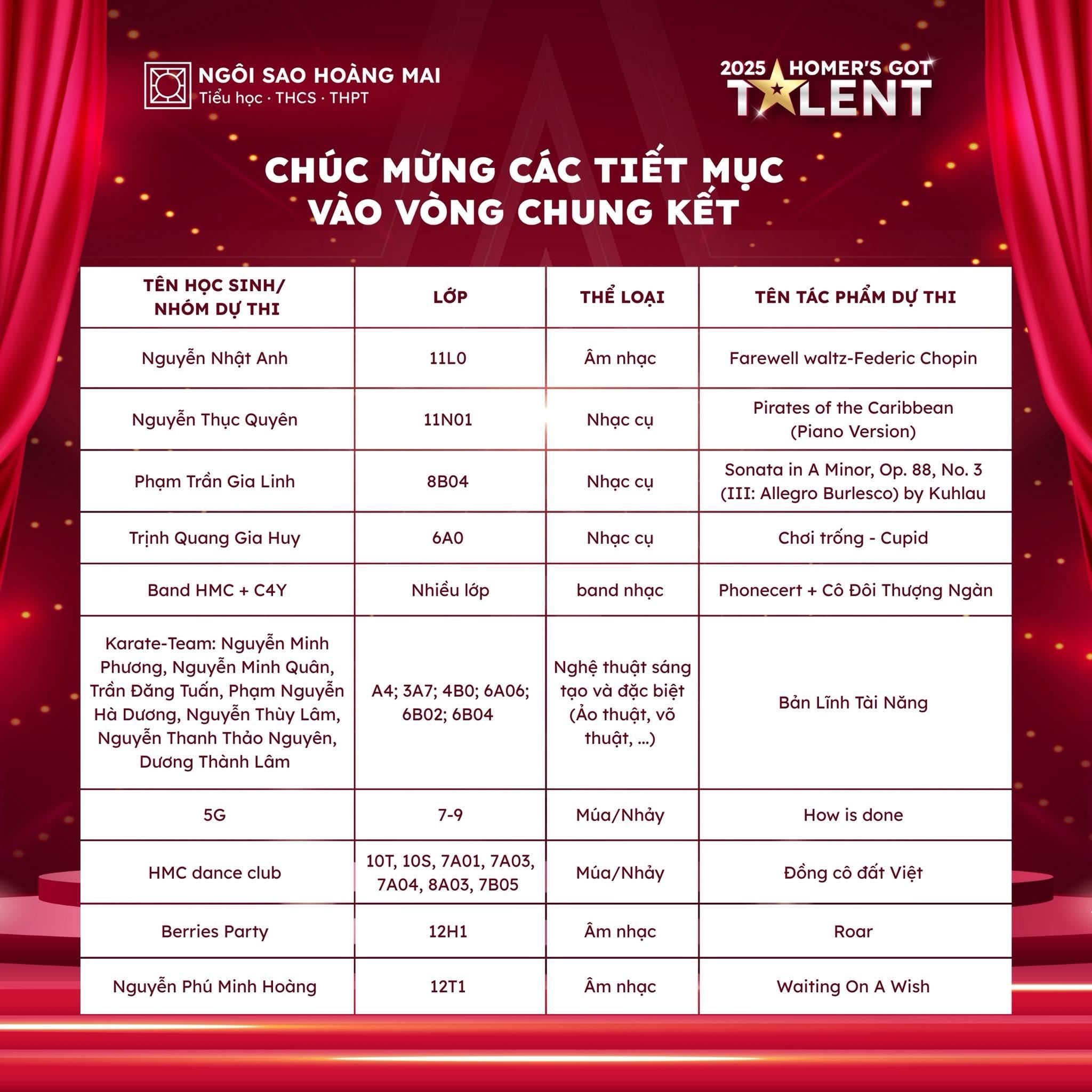 🏆 Từ Vòng Bán kết, 20 tiết mục sẽ tiếp tục bước vào Vòng Chung kết Homer’s Got Talent 2025. Nhưng hơn cả kết quả, điều đáng trân trọng nhất vẫn là: mỗi học sinh đã được sống đúng với đam mê, tự tin thể hiện tài năng và từng bước trưởng thành trên hành trình nghệ thuật của mình.