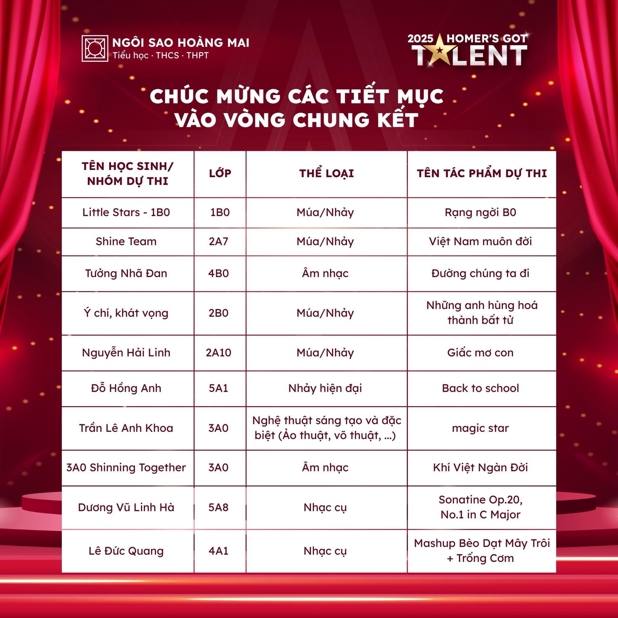 🏆 Từ Vòng Bán kết, 20 tiết mục sẽ tiếp tục bước vào Vòng Chung kết Homer’s Got Talent 2025. Nhưng hơn cả kết quả, điều đáng trân trọng nhất vẫn là: mỗi học sinh đã được sống đúng với đam mê, tự tin thể hiện tài năng và từng bước trưởng thành trên hành trình nghệ thuật của mình.