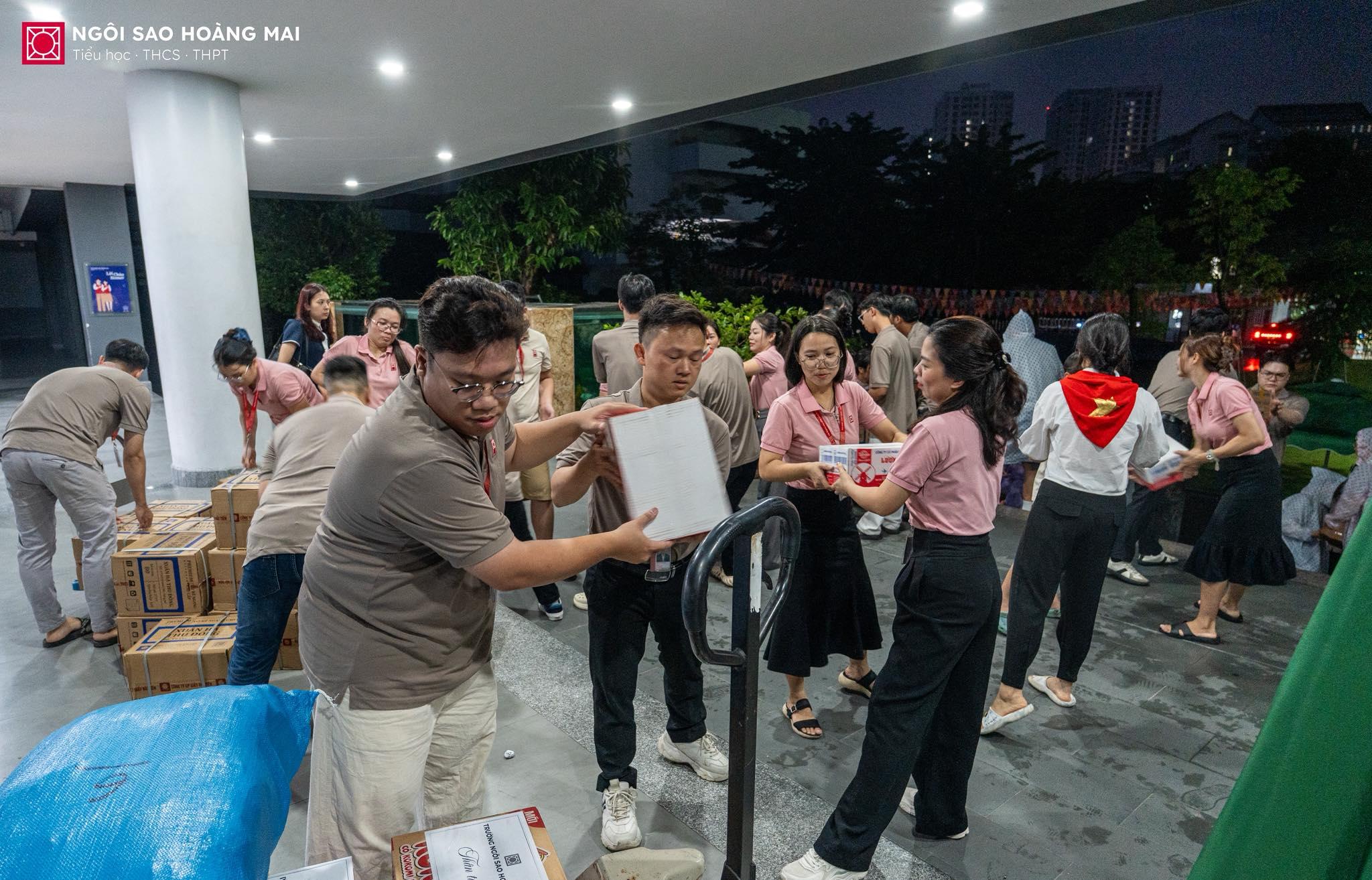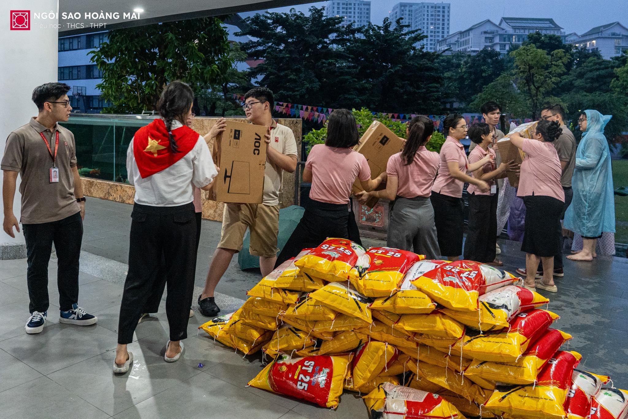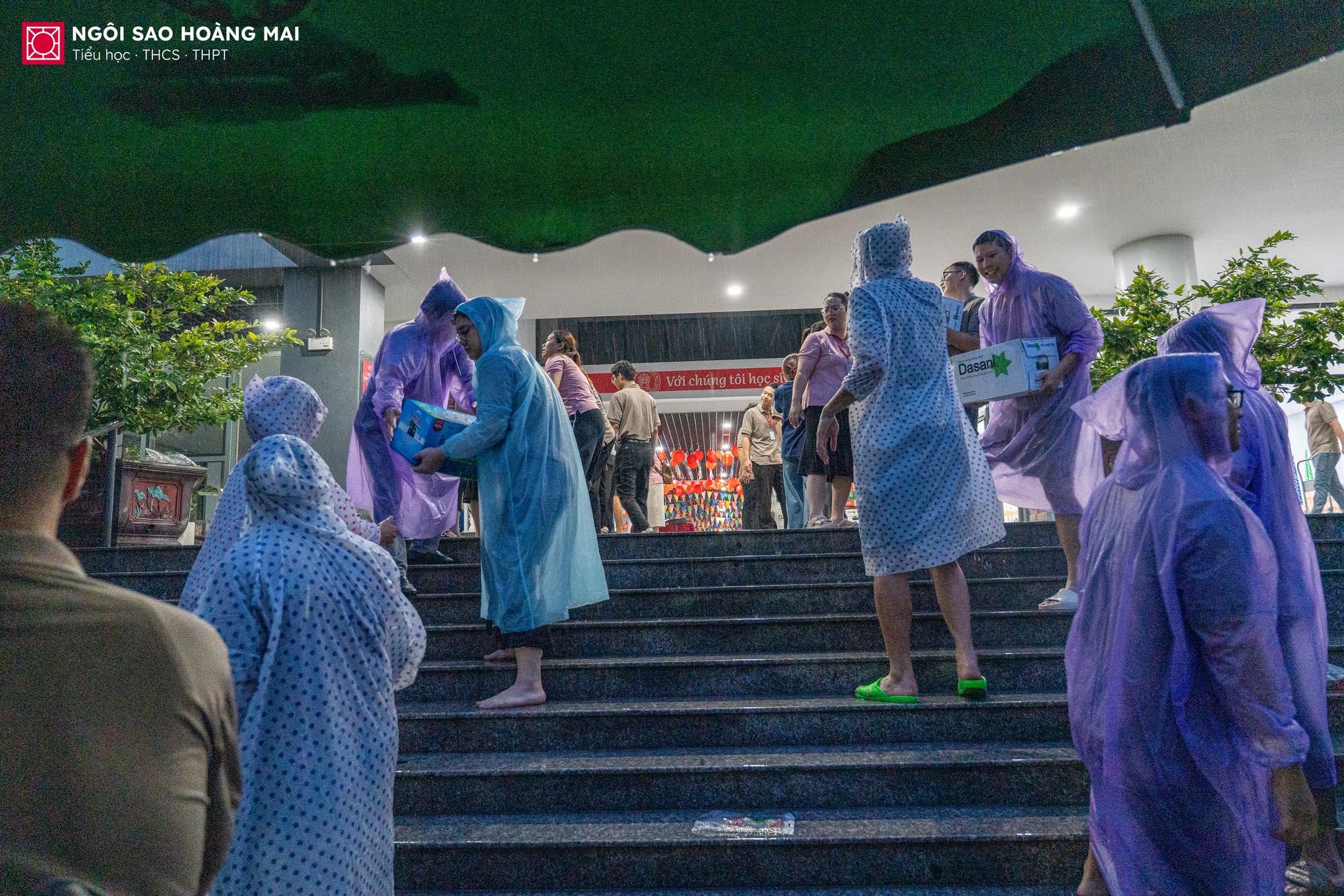 🌧️ Từ sáng sớm trên sân trường Ngôi Sao Hoàng Mai, dù mưa rơi nặng hạt, nhưng chẳng ai ngại ướt áo. Thầy cô, cha mẹ và các con học sinh vẫn cùng nhau bốc xếp từng thùng quà, mỗi món quà là một tấm lòng, một lời nhắn gửi yêu thương hướng về thầy trò vùng lũ. Giữa tiết trời mưa gió, không khí trên sân trường lại trở nên thật ấm áp bởi hơi ấm của tình người, của những trái tim cùng chung nhịp đập sẻ chia.