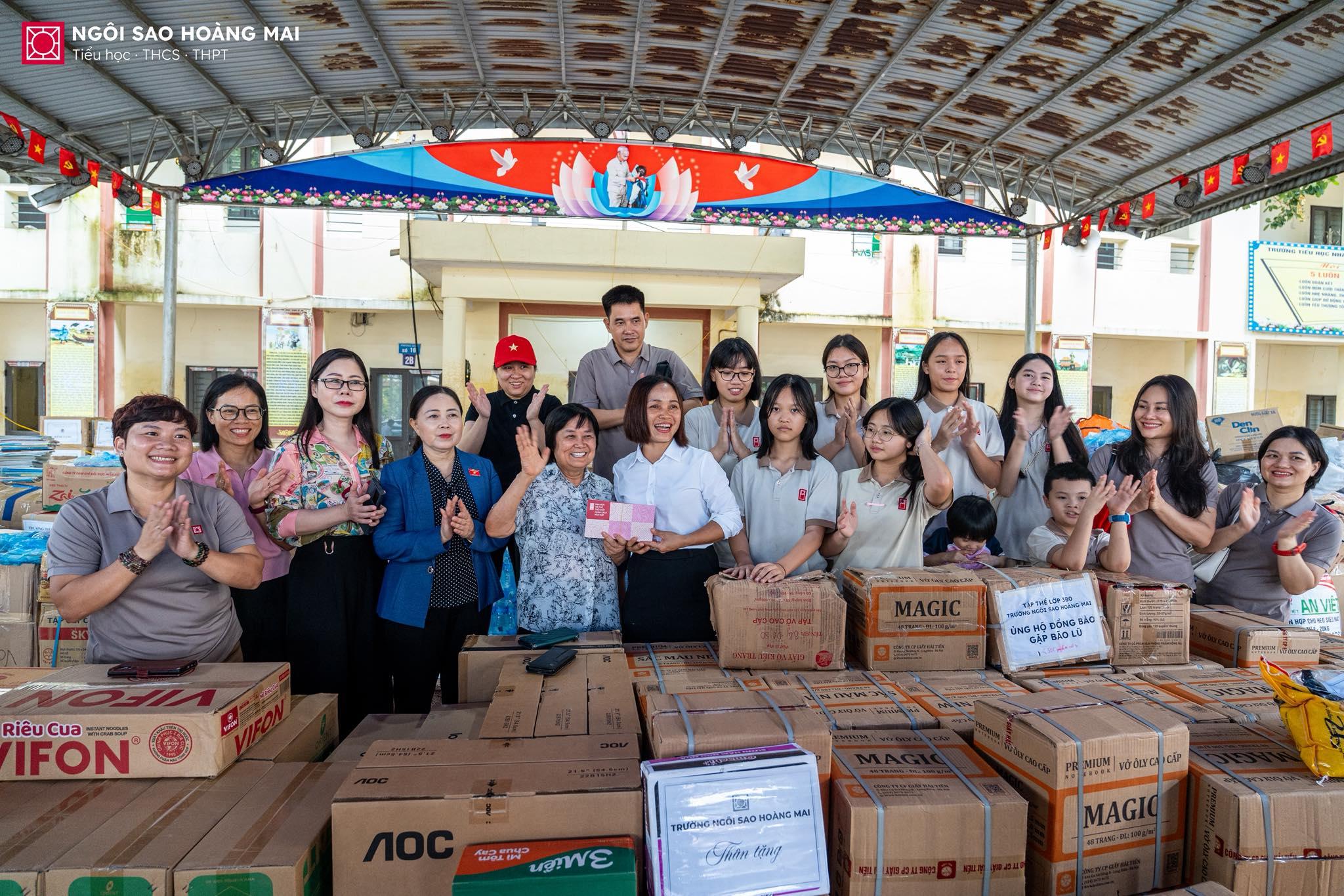 • Bên cạnh đó, Nhà trường gửi tặng mỗi thầy cô giáo và nhân viên tại các điểm trường 2 triệu đồng tiền mặt, 10kg gạo, tổng số tiền hỗ trợ lên tới 708 triệu đồng và nhiều nhu yếu phẩm thiết yếu như sữa, mì tôm, lương khô, nước uống… với mong muốn tiếp thêm động lực để thầy trò sớm ổn định cuộc sống, trở lại dạy và học sau bão lũ.